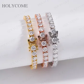 Holycome mozanit bilezik tenis zinciri tam yuvarlak kesim D renk orijinal S925 moda takı hediye düğün yıldönümü günü için